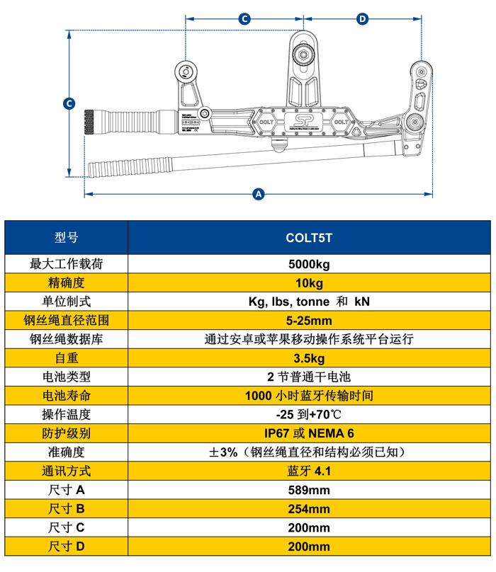 速得COLT智能測(cè)繩器是一種輕型的鋼絲繩拉力快速監(jiān)測(cè)設(shè)備,適用于拉力值不超過(guò)5000kg且繩徑不超過(guò)25mm的各種情況下。