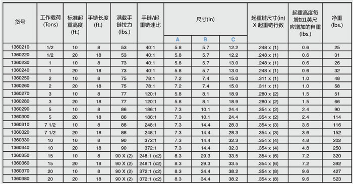 * 起重鏈:采用電焊合金鋼鏈條,經(jīng)熱處理,提高了耐磨性和強(qiáng)度。適配負(fù)載滑輪鏈槽。