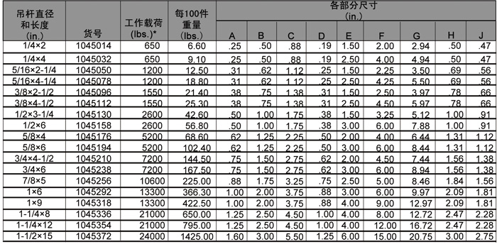 G-277鍛造環(huán)眼螺栓吊點G-275鍛造環(huán)眼螺栓吊點*終極載荷是工作載荷極限的5倍。產(chǎn)品詳情: 請致電 0313-8083338,email:info@skiplifting.com