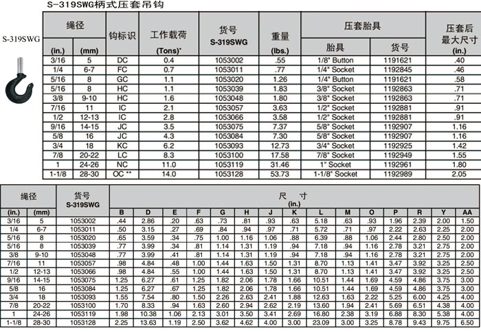 "SKIP-弗力明"S-319SWG 柄式壓套吊鉤