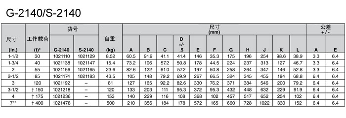 l 鍛造合金鋼,工作載荷從30公噸-175公噸;鑄造合金鋼,工作載荷從200公噸-400公噸。