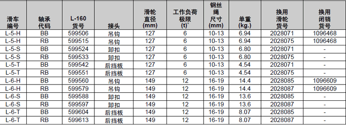 • 滑車上裝有兩個鋼絲繩滑輪(額定載荷)。