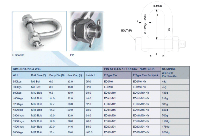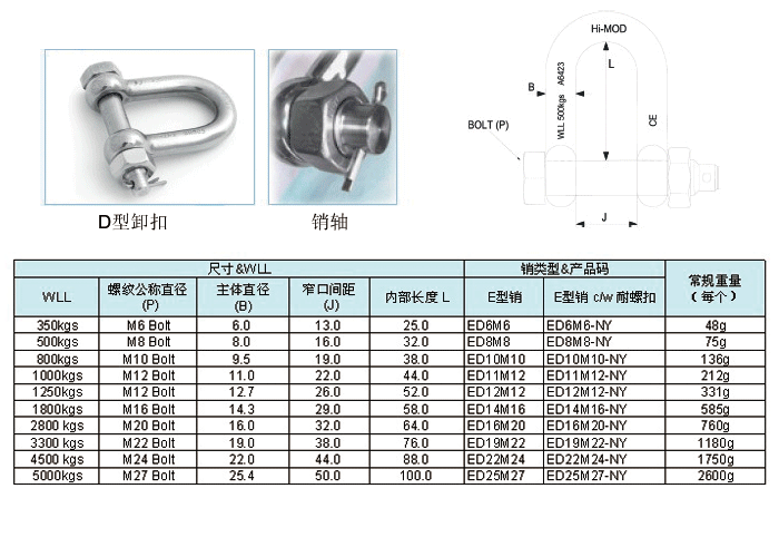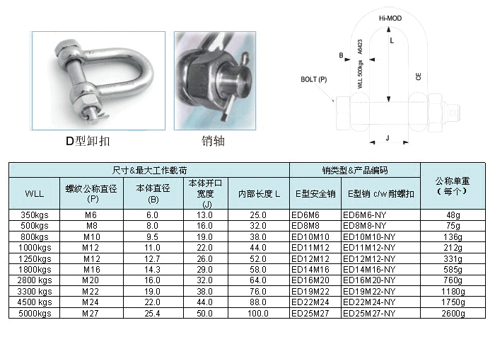 · 制造材料符合歐洲不銹鋼標(biāo)準(zhǔn)EN10088 1.4404的要求(海事級(jí)別316L不銹鋼),配有不銹鋼e型安全銷。