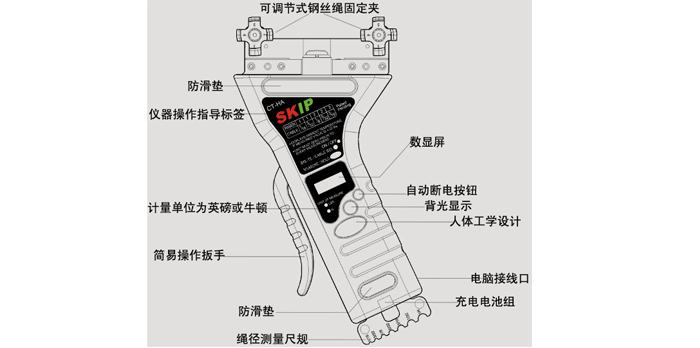 SKIP®手持型鋼絲繩張緊力數(shù)顯測(cè)量?jī)x在實(shí)際應(yīng)用中的性能表現(xiàn)是世界上非常好的,產(chǎn)品本身不僅經(jīng)久耐用,而且適合的用途非常廣泛,能夠滿足客戶在各類不同應(yīng)用環(huán)境中的實(shí)際需求。與同類產(chǎn)品相比,SKIP®手持型鋼絲繩張緊力數(shù)顯測(cè)量?jī)x的數(shù)值精確度要高出許多。美國(guó)的一些大型飛機(jī)制造廠商經(jīng)過(guò)一系列針對(duì)航空控制繩纜的實(shí)際測(cè)試和研究表明,CT-HA 型SKIP®手持鋼絲繩張緊力數(shù)顯測(cè)量?jī)x所監(jiān)測(cè)和讀取的相關(guān)測(cè)試數(shù)據(jù),其精確度要比目前此行業(yè)標(biāo)準(zhǔn)要求的高出多達(dá)7倍!優(yōu)異的質(zhì)量以及性能表現(xiàn),是您選擇SKIP®手持型鋼絲繩張緊力數(shù)顯測(cè)量?jī)x的理由。