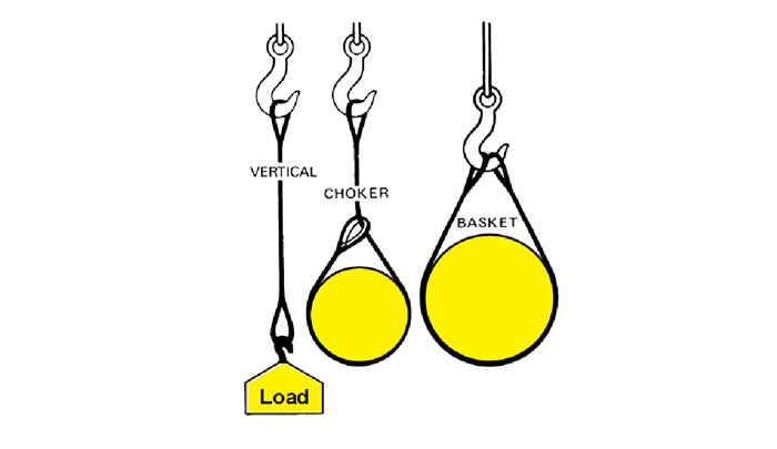 索具的負(fù)載能力也是按照這三種基本的結(jié)索方式確定的:直吊、籃吊和封閉吊(也可稱作穿套吊)。