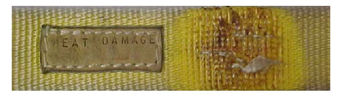 — 任何形式的柔性纖維吊帶索具只要接觸環(huán)境溫度超過65℃,必須撤下并停止使用。