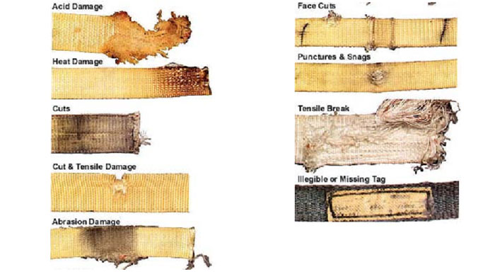 作業(yè)前,目視檢驗(yàn)索具上有無任何損壞,如有損壞或存在疑問,立即將其撤下,停止使用。