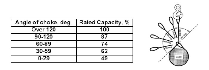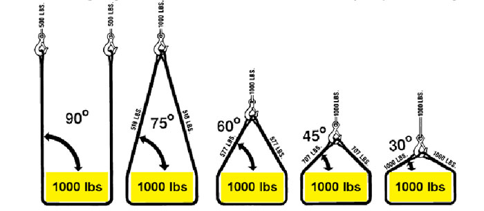 對于籃吊的方式,負(fù)載能力大小的確定是以90°索具夾角為前提的。