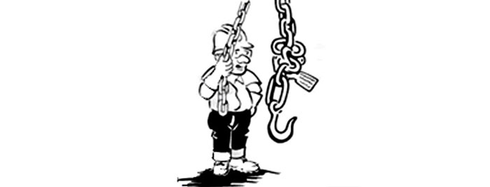 5.銳利邊角鏈條在接觸負荷物的部位應(yīng)做好隔墊保護,防止鏈環(huán)受力變形或磨損。