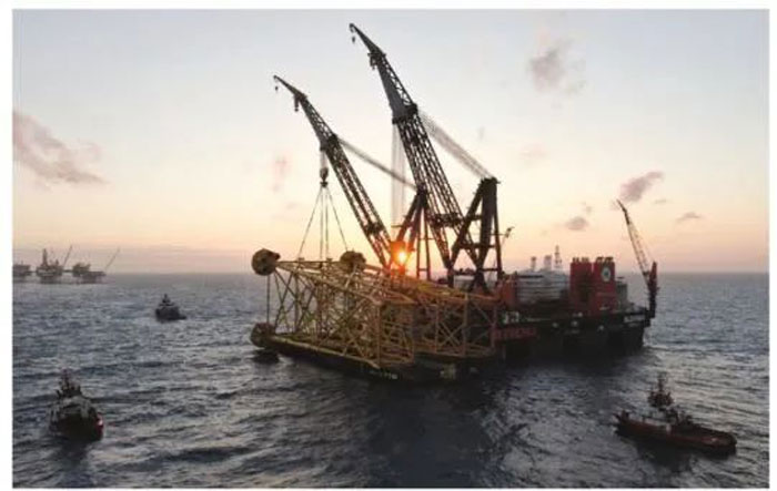 2021年6月,Heerema Marine Contractors (HMC)的Sleipnir海上重型起重船創(chuàng)下了海上起重量最大的導(dǎo)管架安裝記錄,成功安裝了12.500噸的Johan Sverdrup工作平臺(P2)導(dǎo)管架。