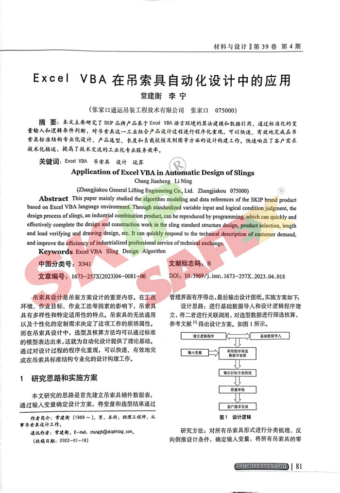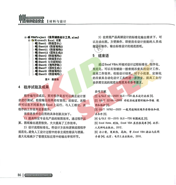 近日,我司在《中國特種設備安全》刊登了《Excel VBA在吊索具自動化設計中的應用》論文,具體地闡述了自動化理念在吊索具設計過程中的實踐應用。