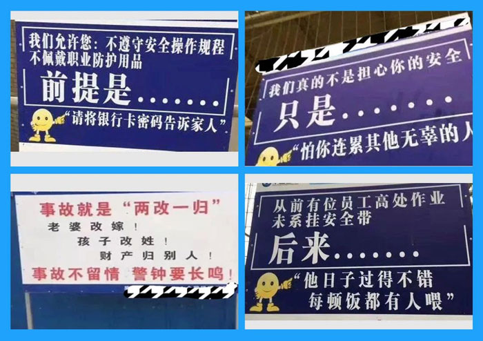 ……這些看起來像段子的警示標(biāo)語,都來源于真實的安全事件,看完這些標(biāo)語,您還敢在安全上馬虎嗎? 安全關(guān)乎生命,它不是一個笑話,但是如果漠視它,你就可能成為一個笑話。就如墨菲定律在安全中的啟示:不要心存僥幸,否則就會導(dǎo)致災(zāi)難。即使發(fā)生造成1人死亡的事故,對于企業(yè)來說僅僅是一般事故,而對于死者本人、家庭,損失是“重大”的,而且絕對可以稱之為“特大”事故。所以安全對自已,對家庭是責(zé)任、是效益、是幸福、是一切,安全的最大受益者是我們自己!對別人、對企業(yè),安全不光是態(tài)度和意識,它是一種承諾,更是專業(yè)行為,一種管理收益。