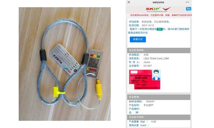 ✔ 索具直徑、出廠日期、長(zhǎng)度(有效或者使用長(zhǎng)度)、生產(chǎn)序列號(hào)(唯一性、可追溯性)