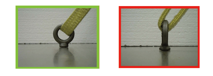 — 斜拉起吊作業(yè)時使用不帶有托肩結(jié)構的環(huán)眼螺栓吊點!