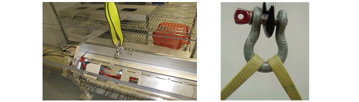 — 如采用雙肢或多肢結(jié)索結(jié)構(gòu)進(jìn)行起吊作業(yè),嚴(yán)禁使用圓柱 銷卸扣,因?yàn)檫@樣可能會(huì)產(chǎn)生側(cè)向負(fù)載。