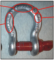 — 使用有損壞或彎折變形等問(wèn)題的卸扣進(jìn)行作業(yè)!