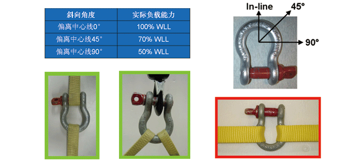 — 作為主環(huán)使用的卸扣,其負(fù)載能力要依據(jù)分支角度的大小進(jìn)行下調(diào)!