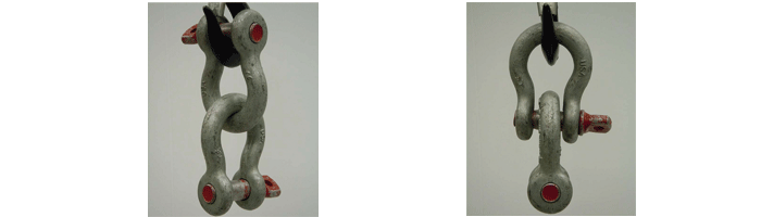 — 負(fù)荷作用應(yīng)在卸扣本體的中心線上或在其左右對(duì)稱,要防止出現(xiàn)側(cè)向負(fù)荷。