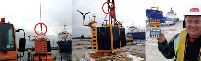 負(fù)責(zé)承接此項(xiàng)目的Larkin公司的高級(jí)司索和檢驗(yàn)工程師約翰道奇森先生說(shuō)道,此觀測(cè)站主要是由一個(gè)裝在海上浮標(biāo)上的小型風(fēng)立方裝置構(gòu)成的,帶有被動(dòng)式機(jī)械穩(wěn)定系統(tǒng)以保證觀測(cè)站穩(wěn)定工作。在項(xiàng)目進(jìn)行過(guò)程中,我們用速得測(cè)力環(huán)來(lái)測(cè)定觀測(cè)站上各個(gè)起吊點(diǎn)在負(fù)荷測(cè)試中的負(fù)載數(shù)據(jù)信息。觀測(cè)站組裝完畢后,測(cè)力環(huán)的峰值延時(shí)顯示功能還可以幫助更好的記錄總負(fù)荷,這樣有利于準(zhǔn)確把握施加試驗(yàn)負(fù)荷的大小水平。